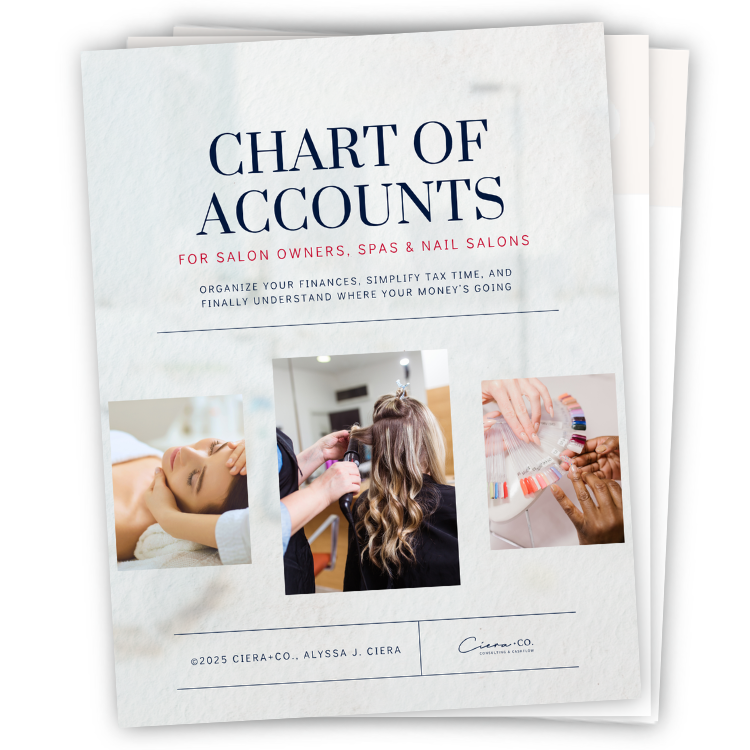 © 2024 Ciera + Co. LLC DBA The Salon's Accountant | [email protected] | Privacy Policy | Terms & Conditions | Return Policy | Cancellation Policy